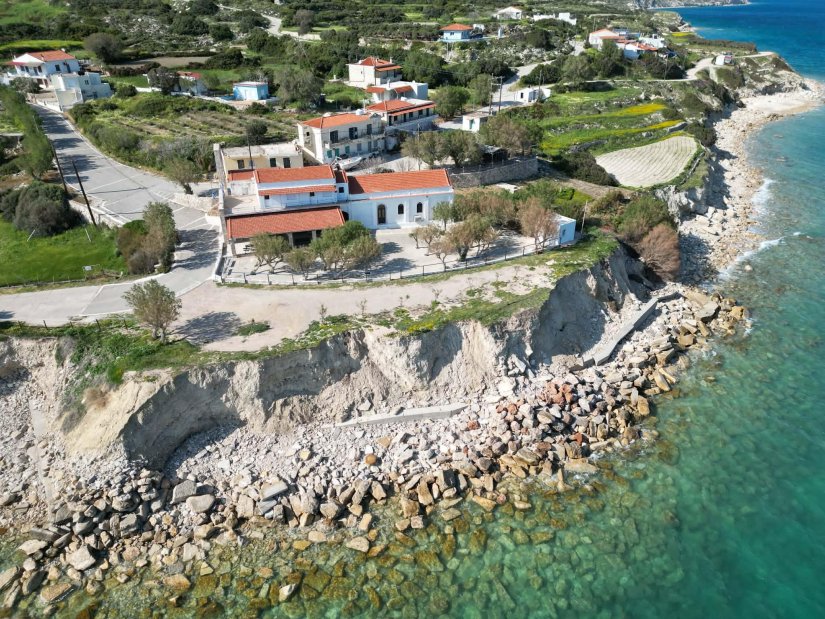 Μετά την τελευταία κακοκαιρία που κατέστρεψε όλο το ανατολικό παραλιακό μέτωπο της Χίου, ένα σημαντικό μέρος που προστάτευε την Εκκλησία της Παναγίας Αγριδιώτισσας έχει διαβρωθεί πλήρως από τα πολύ μεγάλα κύματα.