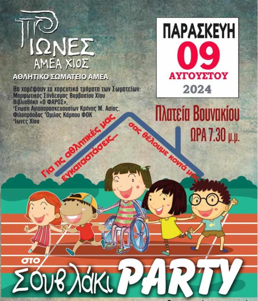 Μετά από μια μικρή παύση, ανάβουν ξανά φέτος οι ψησταριές του Αθλητικού Σωματείου ΑμεΑ «Ίωνες» για το «Σουβλάκι Party» τους, που διοργανώνουν την Παρασκευή 9 Αυγούστου στις 7.30 μ.μ. στην πλατεία Νικολάου Πλαστήρα.