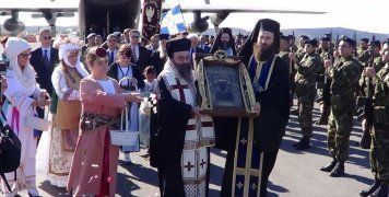 Η εικόνα μεταφέρθηκε με στρατιωτικό αεροσκάφος C130 ενώ στην υποδοχή ήταν παρών σχεδόν το σύνολο της πολιτικής και στρατιωτικής ηγεσίας του νησιού, μέλη πολιτιστικών σωματείων αλλά και πολίτες.