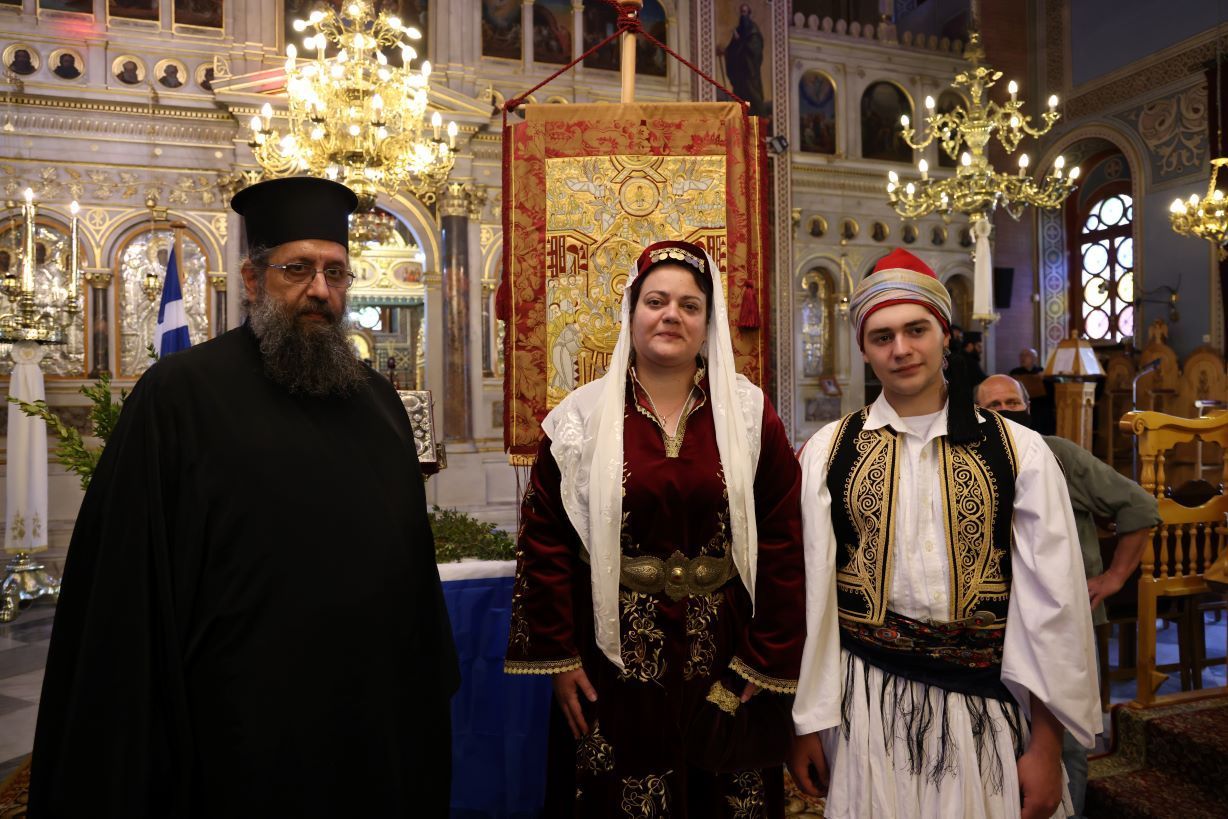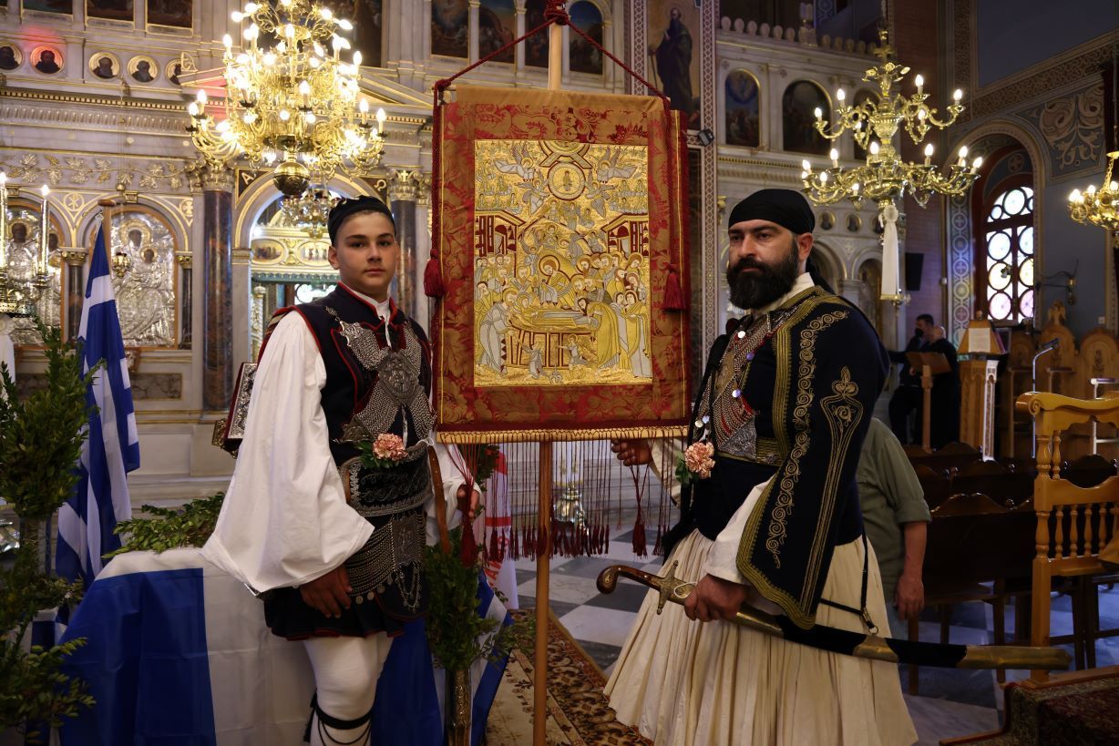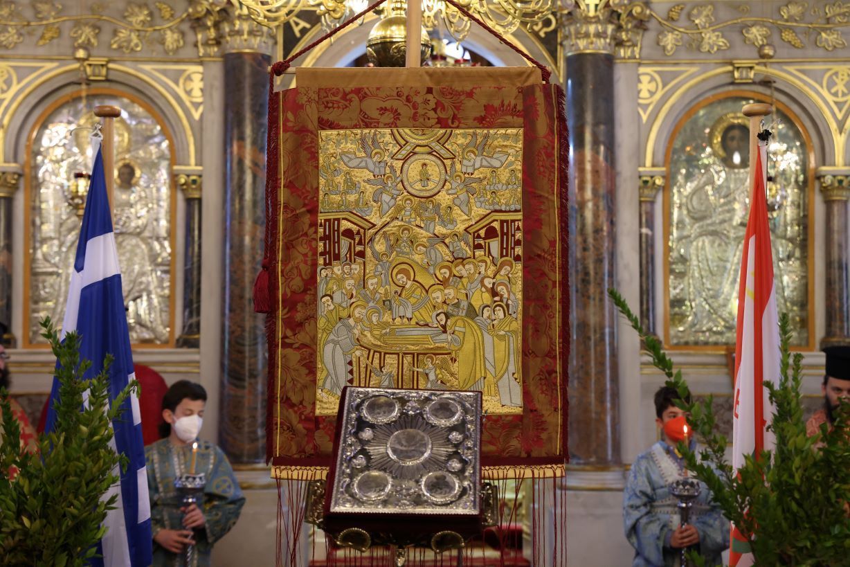 Με την φροντίδα του Μητροπολίτη Χίου κ. Μάρκου και σχετική άδεια της Ιεράς Συνόδου, αντίγραφο του λαβάρου της Αγίας Λαύρας βρίσκεται από το απόγευμα της Δευτέρας 25ης Απριλίου 2022 στον Ιερό Μητροπολιτικό Ναό Χίου.