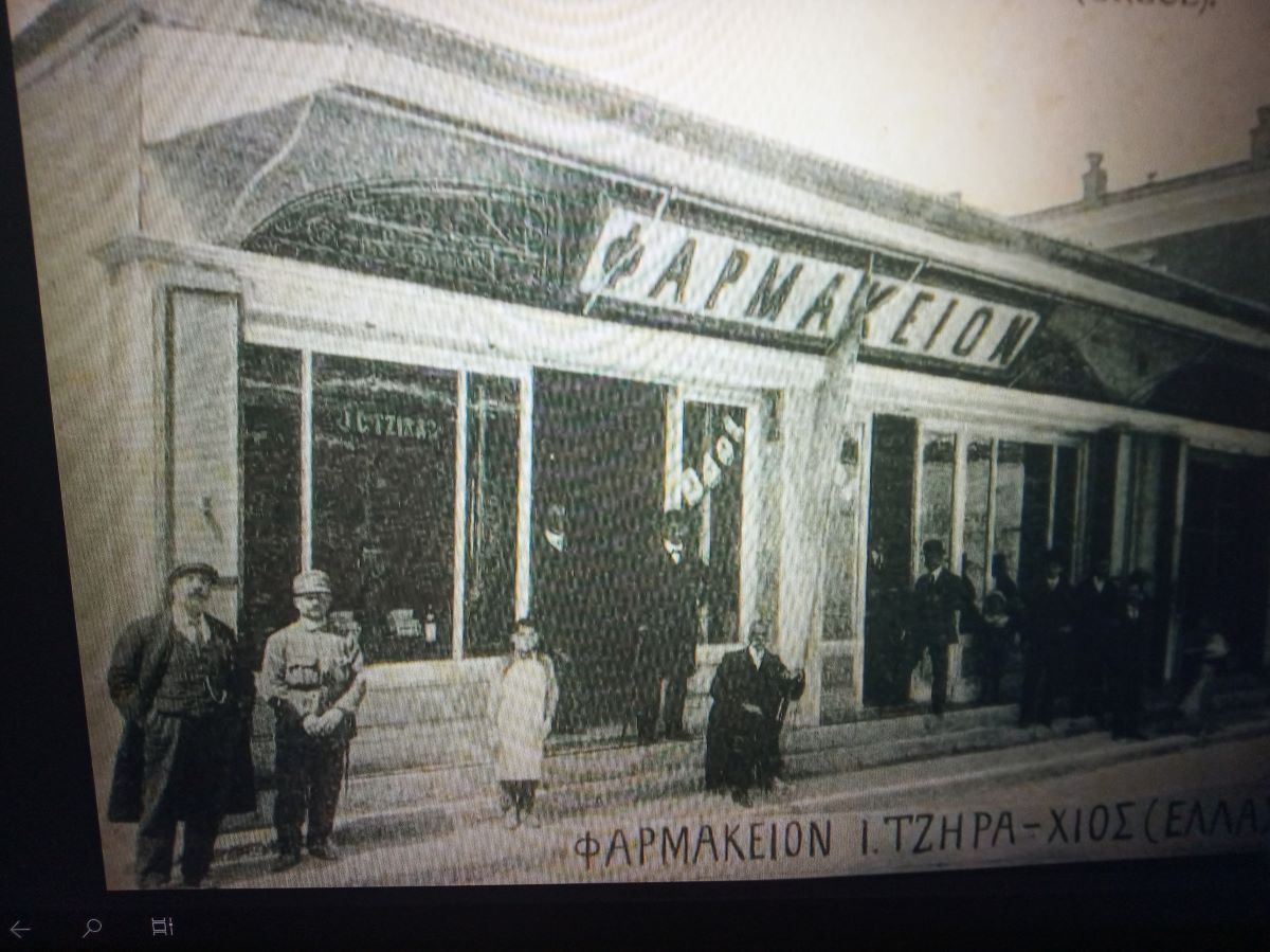 Αμέσως μετά όπου η πρώην Εθνική Τράπεζα ήταν από τα πρώτα φαρμακεία της Χίου ίσως και το πρώτο από τις δεκαετίες του 1800 το Φαρμακείο των Αφων Ι. Τζηρά ...οι δύο αδελφές κληρονόμοι με υπεύθυνο πάντοτε Φαρμακοποιό γιατί δεν είχε σπουδάσει καμία αδελφή, αλλά αν και ιδιοκτήτες ήταν φαρμακουπάλληλοι η Τζανέτ μαζί με τον Στέλιο Καμαράδο και υπεύθυνη φαρμακοποιός η κ. Σακελλαρίου-Οικονομοπούλου, σύζυγος του καλού μας παιδιάτρου Γεωργίου Σακελλαρίου, που είχε το ιατρείο του στην Άμαντου μαζί και ο Παθολόγος Στέλιος Μάσχας .... δίπλα στην εκκλησία του Χριστού...