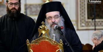 Στή συνέχεια ὁ Σεβασμιώτατος Μητροπολίτης Χίου, Ψαρῶν καί Οἰνουσσῶν κ. ΜΑΡΚΟΣ, ἔλαβε τό λόγο καί ἀπεύθυνε ευλογίες καί εόρτιο χαιρετισμό. Ἀφού συνεχάρη καί εὐχαρίστησε ξεχωριστά ὅλους τούς παρευρισκόμενους καί ἐμπλεκόμενους στήν ἐν λόγῳ ἐκδήλωση, μέ συγκινητικούς λόγους ὁμίλησε γιά τόν Προκάτοχό του Μακαριστό Μητροπολίτη κυρό ΔΙΟΝΥΣΙΟ, λέγοντας: Σήμερα 17 Δεκεμβρίου ἡμέρα ἑορτασμοῦ τῆς μνήμης τοῦ Ἁγίου Διονυσίου Ἀρχιεπισκόπου Αἰγίνης, ἐνθυμούμεθα ὅλοι τό Μακαριστό Μητροπολίτη κυρό Διονύσιο, ὁ ὁποῖος ὑπῆρξε καί ὁ ἱδρυτής τῆς Σχολῆς Βυζαντινῆς Ἐκκλησιαστικῆς Μουσικῆς τῆς Ἱερᾶς Μητροπόλεως, καί ἀφιερώνουμε τήν χριστουγεννιάτικη αὐτή ἐκδήλωση πρός τιμήν καί μνήμην Του. Ὁμιλώντας, στήν συνέχεια, γιά τό Μυστήριο τῆς Θείας Ἐνανθρωπήσεως τοῦ Υἱοῦ καί Λόγου τοῦ Θεοῦ μεταξύ ἄλλων ἀναφέρθηκε στόν χαρακτηρισμό τοῦ Ἱεροῦ Χρυσοστόμου γιά τήν ἑορτή τῶν Χριστουγέννων ὡς «Μητρόπολη τῶν ἑορτῶν» λέγοντας, ὅτι ὀνομάσθηκε Μητρόπολη (μητέρα) τῶν ἑορτῶν γιατί: α) ἀποτελεῖ τήν ἀρχή ὅλων τῶν ἄλλων μεγάλων ἑορτῶν τοῦ ἐνιαυτοῦ καί β) γιατί ἡ ἐνανθρώπηση τοῦ Θεοῦ Λόγου ἀποτελεῖ τήν ἀρχή τῆς ἐπί γῆς παρουσίας τοῦ Κυρίου, ἡ ὁποία φθάνει μέχρι τήν Σταυρική Του θυσία καί τήν Ἀνάστασή Του, ἀνοίγοντας τόν δρόμο τῆς ἐπιστροφῆς τοῦ ἀνθρώπου στή Μητρόπολή του, τόν Παράδεισο. Τέλος, ἐζήτησε ἀπό τούς πιστούς νά προετοιμασθοῦν ἐκκλησιαστικά ὥστε τά φετεινά Χριστούγεννα νά εἶναι πραγματικά Χριστούγεννα. Χριστούγεννα μέσα στην ζωή τῆς Ἐκκλησίας, πού εἶναι τό Σῶμα τοῦ Χριστοῦ.