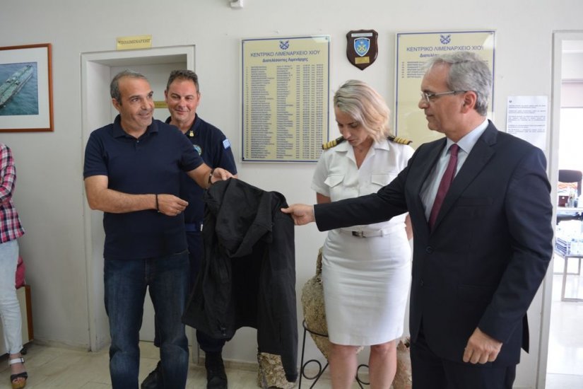 Ο πρόεδρος των Λιμενικών Υπαλλήλων Χίου - Σάμου Γιάννης Τσαλίκης τόνισε, παραλαμβάνοντας τα μπουφάν, ότι η Περιφερειακή Ενότητας Χίου είναι πάντα δίπλα τους σε ότι έχει ζητηθεί.