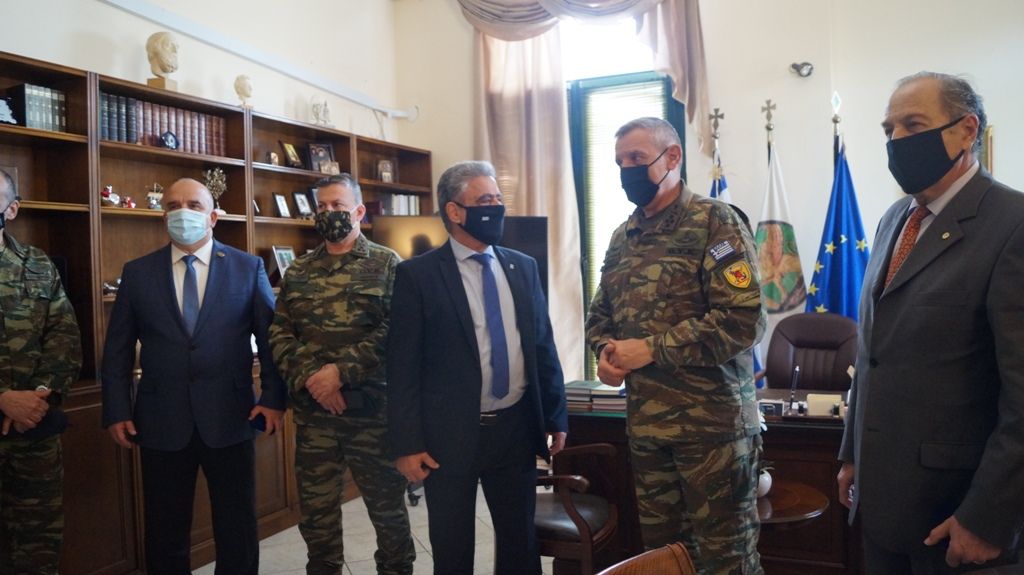 Τον αρχηγό ΓΕΕΘΑ υποδέχτηκαν στην είσοδο του Δημαρχείου ο Δήμαρχος Χίου, ο Πρόεδρος του Δημοτικού Συμβουλίου Παύλος Καλογεράκης και ο Γ.Γ του Δήμου Αντώνης Ζερβάκης.