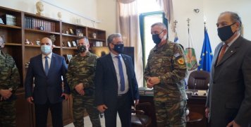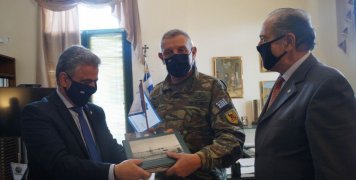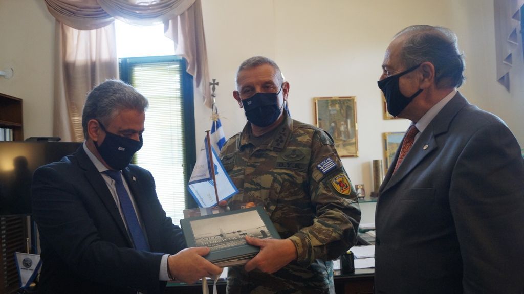 Ο Παύλος Καλογεράκης προσέφερε στον αρχηγό ΓΕΕΘΑ την επετειακή σημαία του Δήμου Χίου για τα 200 χρόνια από την Ελληνική Επανάσταση, λέγοντας του πόσο σημαντικό είναι να αγωνίζεσαι για αυτήν.