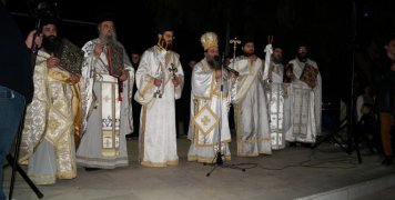 Και τέλος ελιτανεύσαμε το σώμα του Χριστού μας εδώ στην Πλατεία Βουνακίου, στην Πλατεία που αφενός μεν έχει το όνομα του Στρατηγού Νικολάου Πλαστήρα, η μνήμη του οποίου μας φέρνει αναμνήσεις προσευχής από τις αλύτρωτες στάχτες της Σμύρνης, αλλά και συγχρόνως και δίπλα στην φυλακή του Κάστρου μας, εκεί όπου ο προκάτοχος μου, ενθομάρτυς Μητροπολίτης Χίου Πλάτων απέδειξε όχι ποιό είναι το δικαίωμα, αλλά η υποχρέωση του κάθε Ορθοδόξου Κληρικού, να αρθρώνει λόγο Θεολογικό και λόγο Εθνικό.