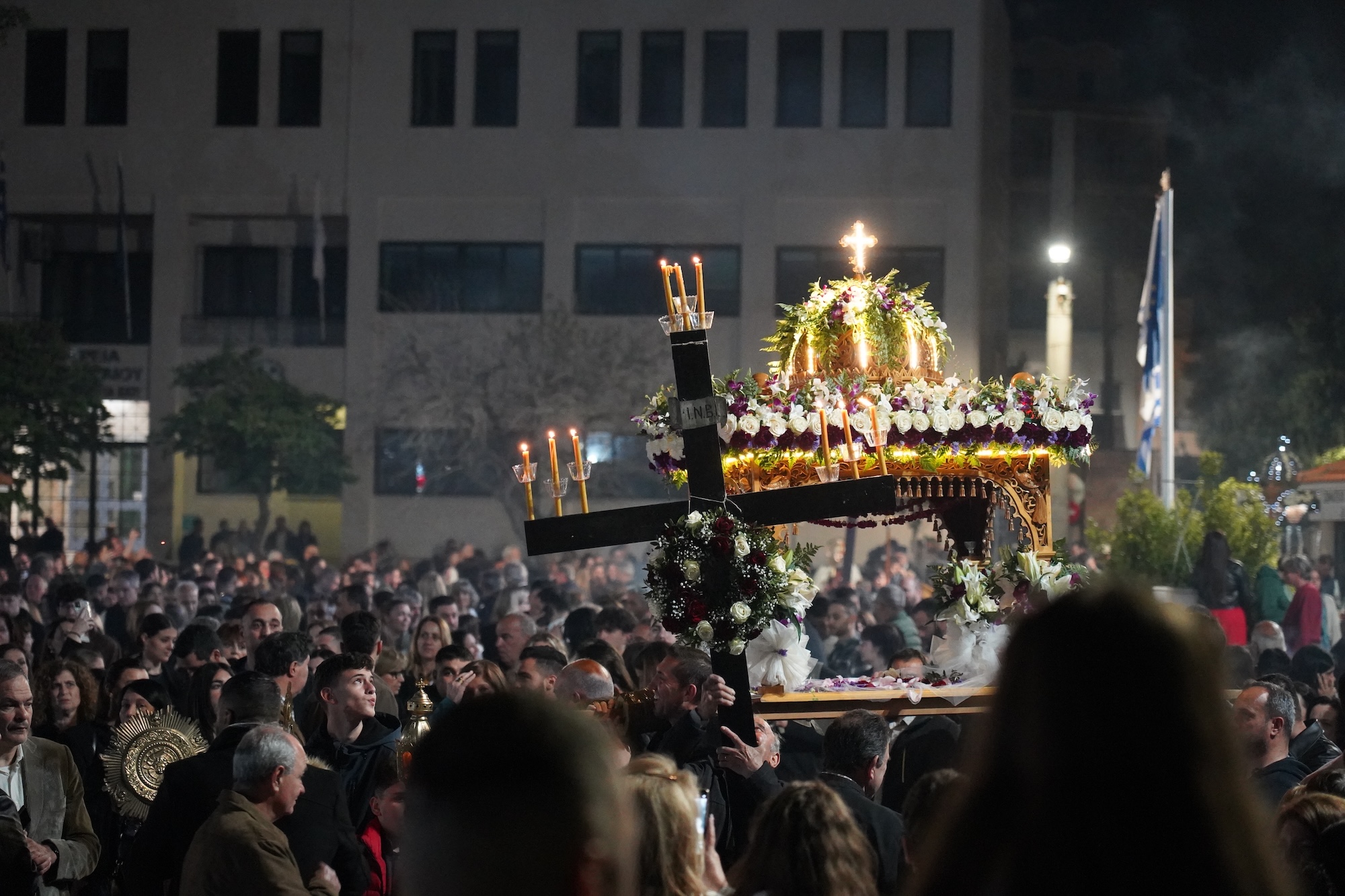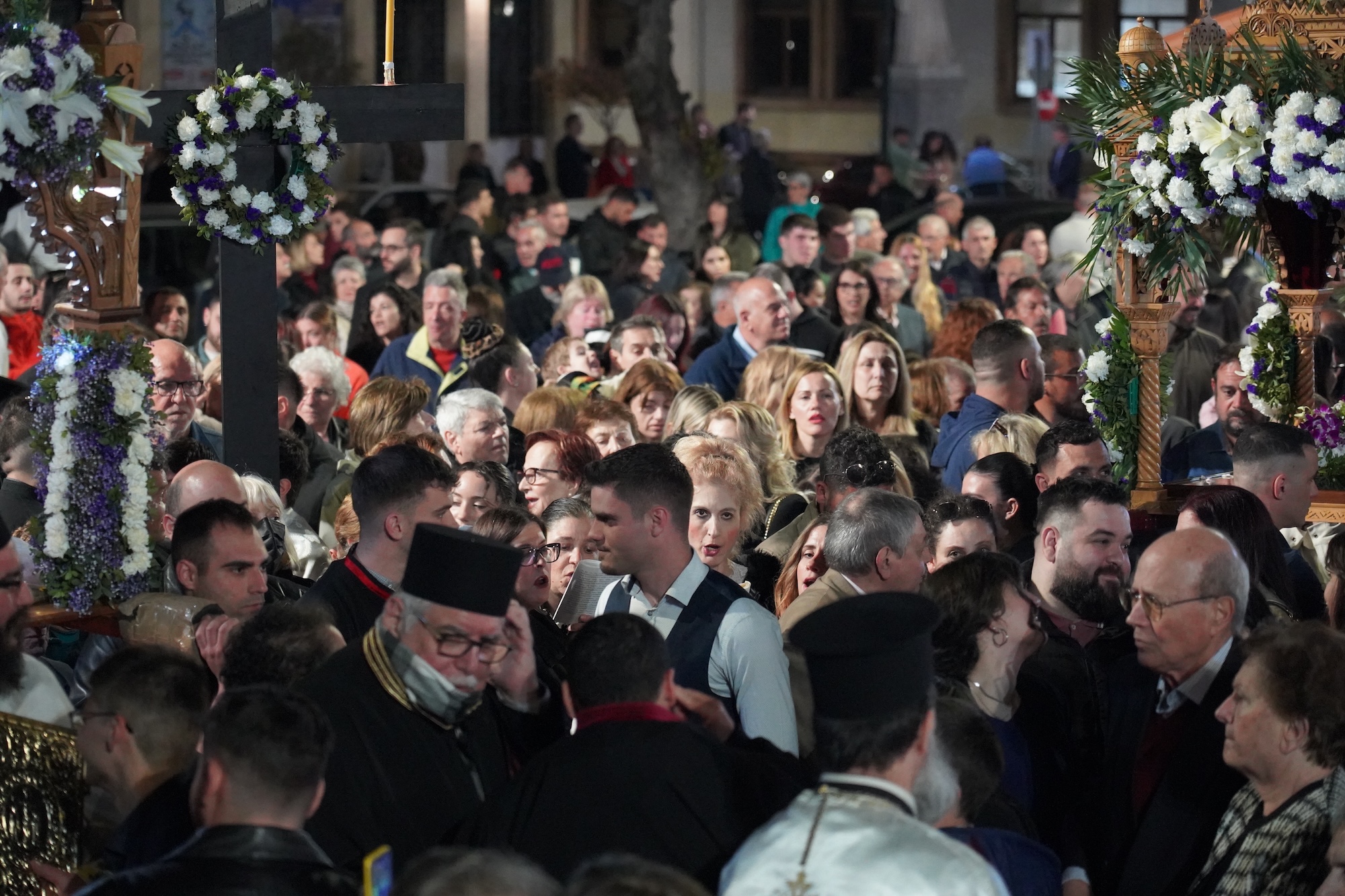 Κατάμεστη από πιστούς, ντόπιους και επισκέπτες ήταν η πλατεία Νικολάου Πλαστήρα στην ετήσια συνάντηση των Επιταφίων των κεντρικών Συνοικιών της πόλης το βράδυ της Μεγάλης Παρασκευής.
