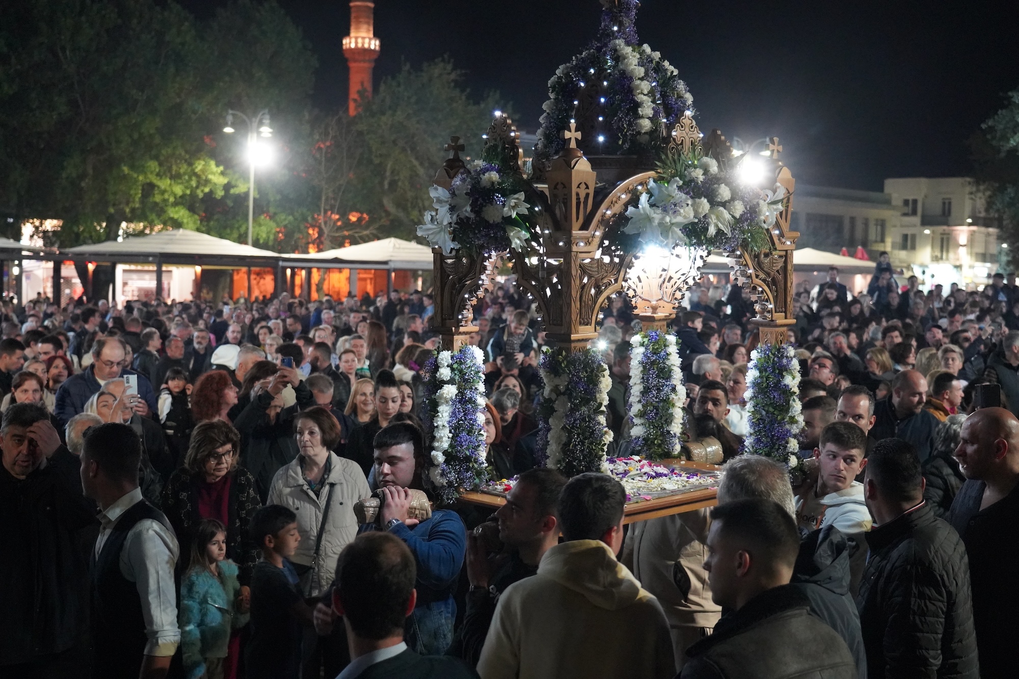 Παρουσία του βουλευτή Χίου της Νέας Δημοκρατίας Νότη Μηταράκη, του Δημάρχου Χίου Γιάννη Μαλαφή, αιρετών, στελεχών του Στρατού και των Σωμάτων ασφαλείας και χιλιάδων πιστών, οι τέσσερις Επιτάφιοι των Ενοριών Μητροπόλεως, Αγίου Γεωργίου, Αγίου Ιακώβου και Αγίων Αναργύρων, συναντήθηκαν στην Πλατεία Νικολάου Πλαστήρα, όπου ο Μητροπολίτης Χίου κ. Μάρκος για πολλοστή φορά απευθύνθηκε στους πιστούς με μια από καρδιάς και στήθους εμπνευσμένη ομιλία.