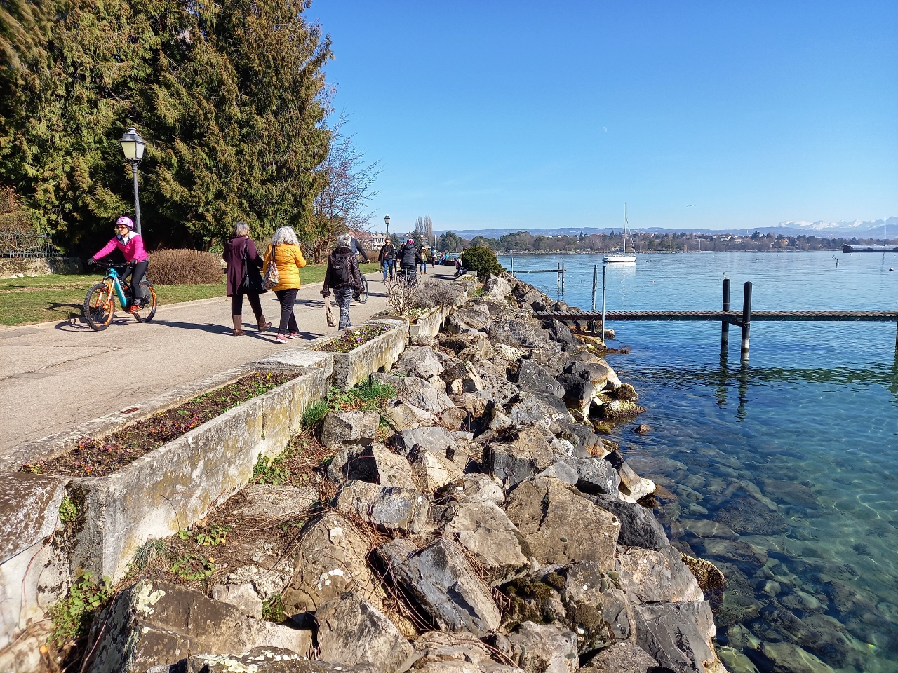 Στη χώρα μας, η ανάπλαση της παραλίας της Θεσσαλονίκης αποτελεί το πλέον πρόσφατο παράδειγμα μιας επιτυχημένης αστικής παρέμβασης. Ενδεικτικά παραθέτω και μερικές φωτογραφίες από το παραλίμνιο μέτωπο μιας κωμόπολης της Ελβετίας που καταδεικνύουν την απλότητα της παρέμβασης (επιχωμάτωση με βράχια στη λίμνη και δημιουργία πεζόδρομου - ποδηλατόδρομου με άσφαλτο πλάτους περίπου 4,5 μέτρων).