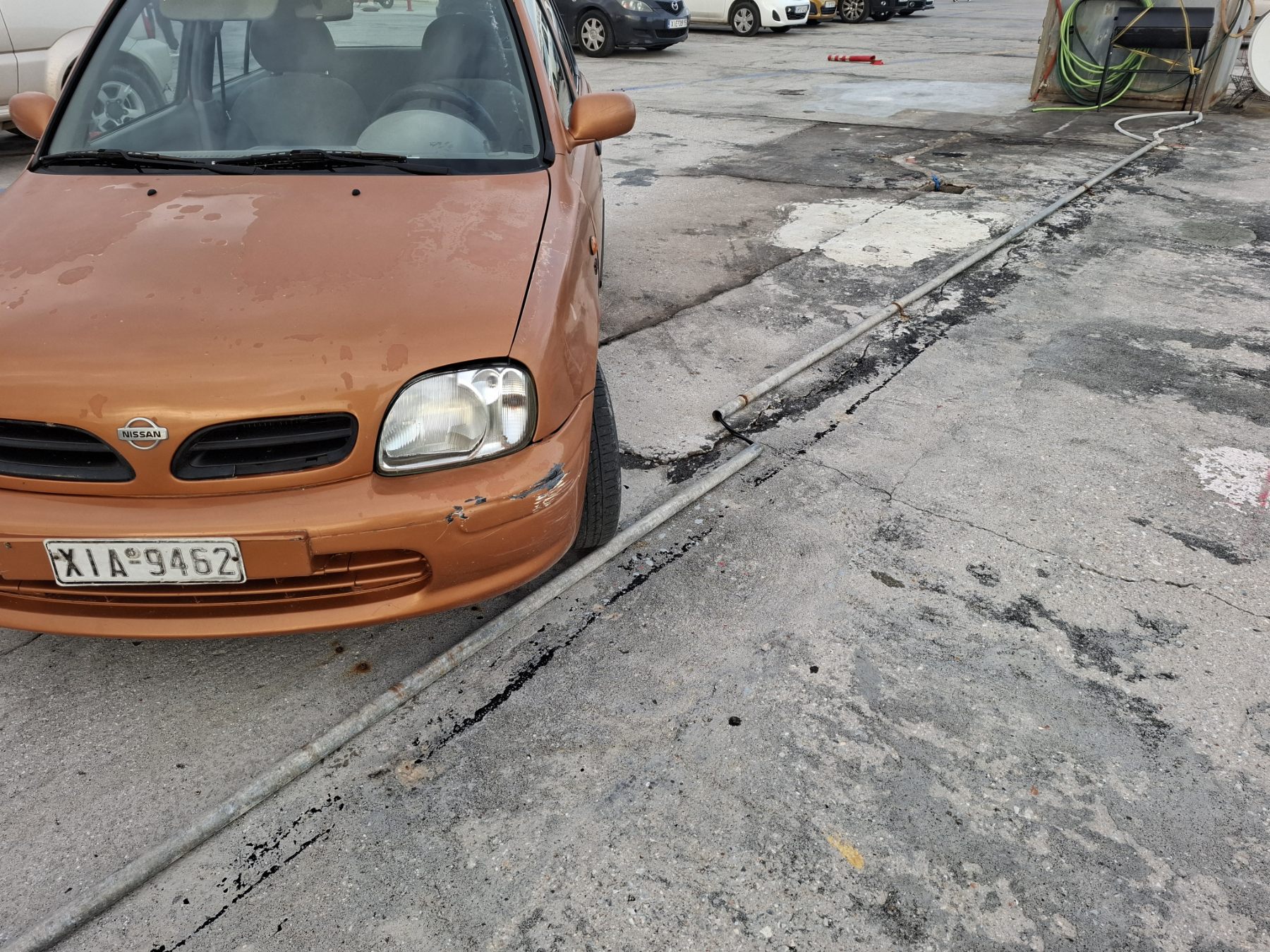 Αυτή η "διαστημική" κατασκευή, τεμπόζιτα, καύσιμα κ.λπ. βρίσκονται στον περιβάλλοντα χώρο του Λιμεναρχείου, χωρίς κατ' ανάγκην να ανοίκουν σε αυτό, κι' ας μην μπούμε σε άλλες λεπτομέρειες, μιας και εμάς μας νοιάζει κυρίως το εικονιζόμενο έρπον καλώδιο, πιθανότατα ρεύματος, που κυλάει στο τσιμέντο χύμα και που ανά πάσα στιγμή κινδυνεύει να κοπεί.