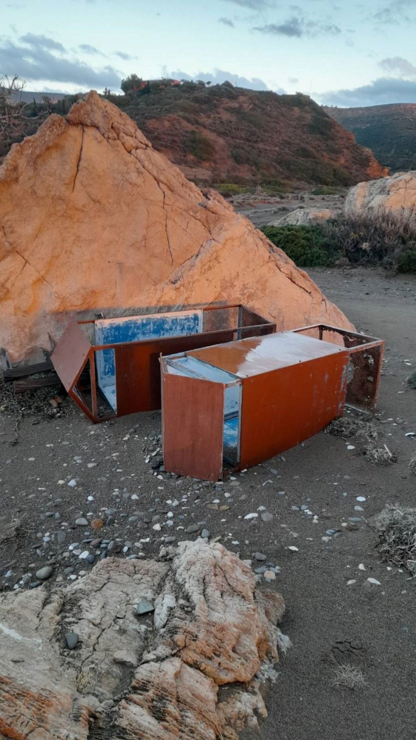 "Αγαπητή ΑΛΗΘΕΙΑ, κάνοντας ποδαρόδρομο στην μαγευτική παραλία στον Μάναγρο της Βολισσού, βρήκα πεταμένες και σε απόσταση 100 περίπου μέτρα από την θάλασσα, πίσω από ένα βράχο, αυτές τις δύο αλαξιέρες του Δήμου Χίου. Αναρωτιέμαι σε κανέναν δεν... έλειψαν;"
