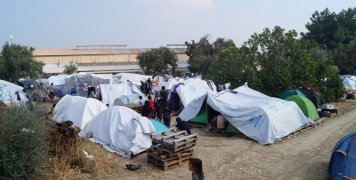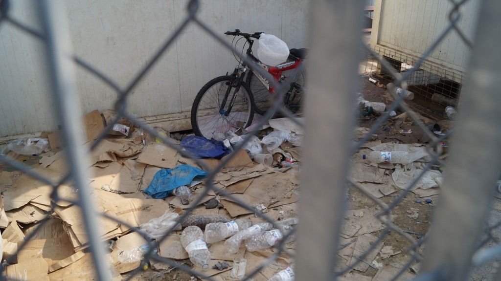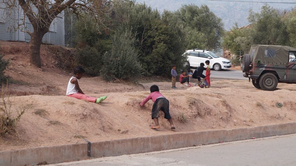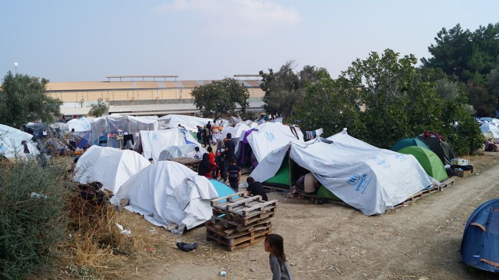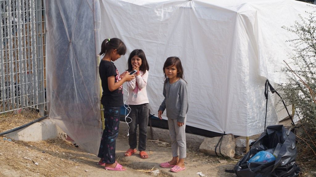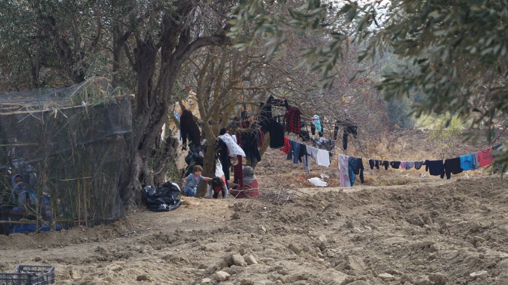 Λίγα μέτρα πιο κάτω κοντέινερ, σκηνές, άνθρωποι και σκουπίδια. Είδαμε δεκάδες να προσπαθούν να πλύνουν ρούχα, να κάνουν μπάνιο και να μαγειρεύουν.. Ο ένας δίπλα στην ανάσα του άλλου… Νερά βρώμικα δίπλα στο κατώφλι της σκηνής… Μυρωδιά ασφυκτική και αφόρητη.. Δεκάδες παιδιά σε παρέες να τρέχουν, να γελούν, να παίζουν με αυτοσχέδια παιχνίδια και μερικά από αυτά να μας λεν…. καλησπέρα, μια από τις λίγες ελληνικές λέξεις που έχουν μάθει …