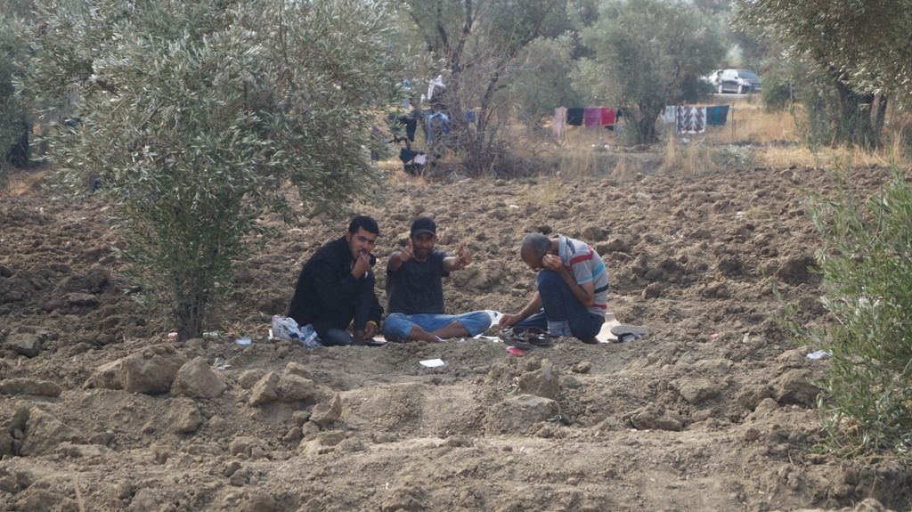 Στα σκαμμένα χωράφια πιο κάτω οι άνθρωποι των σκηνών έτρωγαν κατάχαμα… κάθονταν κατάχαμα… ζουν κατάχαμα..