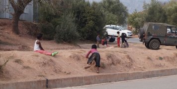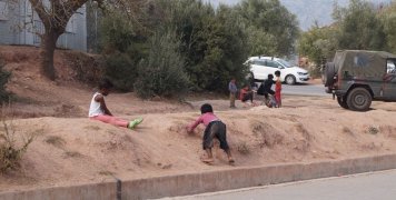 Ακριβώς δίπλα από το ΚΥΤ ο χώρος με τα ασυνόδευτα προσφυγόπουλα που ξεπερνούν τα διακόσια σε ένα περιφραγμένο, ασφυκτικό χώρο. Δίπλα δεκάδες άνθρωποι στοιβαγμένοι, αφημένοι σε ένα χώρο που αν σηκωθείς δεν ξαναβρίσκεις θέση να καθίσεις…