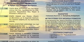 Η Περιφερειακή Ενότητα Χίου τιμά την Ημέρα των Ενόπλων Δυνάμεων, ανήμερα της Εορτής των Εισοδίων της Θεοτόκου, τη Δευτέρα 21 Νοεμβρίου 2022.