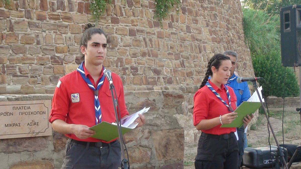 Tην ανεκτίμητη και αλησμόνητη θυσία των Προσκόπων του Αϊδινίου της Μικράς Ασίας τον Ιούνιο του 1919, που παρέμειναν στη φλεγόμενη πόλη υπηρετώντας τους συνανθρώπους τους και την πατρίδα μέσα στην κόλαση της σφαγής, στεκόμενοι στο πλευρό του σκληρά βαλλόμενου Ελληνικού Στρατού και του φοβισμένου-κυνηγημένου ελληνικού πληθυσμού, δίνοντας τη βοήθειά τους με αυταπάρνηση και με τραγική κατάληξη τη σύλληψη και την εκτέλεσή τους από τους Τσέτες (άτακτες και πολύ βίαιες ομάδες τουρκικών στρατευμάτων) τίμησε την Τετάρτη 26 Ιουνίου 2019, στην Πλατεία Ηρώων Προσκόπων Μικράς Ασίας (στην ανατολική πλευρά της Τάφρου του Κάστρου - πίσω από το Τελωνείο) η Περιφερειακή Εφορία Χίου του Σώματος Ελλήνων Προσκόπων, με τη σύσσωμη παρουσία και συμμετοχή εκπροσώπων της Εκκλησίας, της Πολιτείας, του Στρατού και των Σωμάτων Ασφαλείας του νησιού μας, σε μια σεμνή και καθ' όλα άξια τιμητική εκδήλωση μνήμης. Αμέσως μετά την επιμνημόσυνη δέηση, που τέλεσε ο εκπρόσωπος του Σεβασμιοτάτου Μητροπολίτη Χίου, Ψαρών και Οινουσσών, ακολούθησαν οι χαιρετισμοί του Αντιπεριφερειάρχη και νεοεκλεγέντος Δημάρχου Χίου, Σταμάτη Κάρμαντζη και του Δημάρχου Χίου, Μανώλη Βουρνού, που τόνισαν ότι το φωτεινό παράδειγμα των Προσκόπων του Αϊδινίου, που έγραψαν τη δοξασμένη αυτή σελίδα του Ελληνικού Προσκοπισμού με το αθώο παιδικό αίμα τους, αγγίζει και εμπνέει τις καρδιές όλων μας και προπαντός τις νέες γενιές των Προσκόπων, που δεν ξεχνούν ποτέ την υπόσχεσή τους: "να εκτελούν το καθήκον τους στο Θεό και την Πατρίδα και να βοηθούν κάθε άνθρωπο σε κάθε περίσταση". Στη συνέχεια ο Περιφερειακός Έφορος Προσκόπων Χίου, Φώντας Σταμπέλος και ο Αναπληρωτής Περιφερειακός Έφορος, Νίκος Γανιάρης πρόσθεσαν κατά το χαιρετισμό τους στην τιμητική επετειακή εκδήλωση, ότι η τελετή αυτή, που τιμά τους Προσκόπους του Αϊδινίου, είναι κι ένας φόρος τιμής για όλους τους Προσκόπους που έπεσαν στη διάρκεια της Μικρασιατικής Εκστρατείας και της Μικρασιατικής Καταστροφής. Ακολούθως, ο Ιάσονας και η Μαρκελλίνα (νεαροί Πρόσκοποι) μετέφεραν το κοινό στην εποχή εκείνη (πριν 100 χρόνια) εξιστορώντας το χρονικό της θυσίας και τα τραγικά εκείνα γεγονότα του Αϊδινίου. Τέλος... Λυκόπουλα, Πρόσκοποι, Ανιχνευτές και Βαθμοφόροι, παλαιοί Πρόσκοποι και το ευαισθητοποιημένο κοινό που προσήλθε στην τιμητική εκδήλωση χαιρέτισαν την Ελληνική Σημαία και έψαλαν τον Εθνικό Ύμνο.