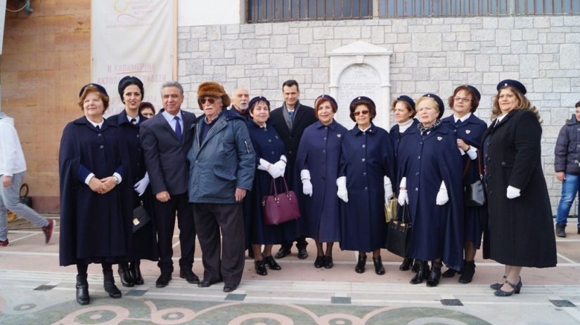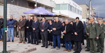 Μετά την επιμνημόσυνη δέηση ακολούθησε τρισάγιο και κατάθεση στεφάνων στην αναθηματική πλάκα στο λιμάνι, μπροστά από το τελωνείο Χίου.