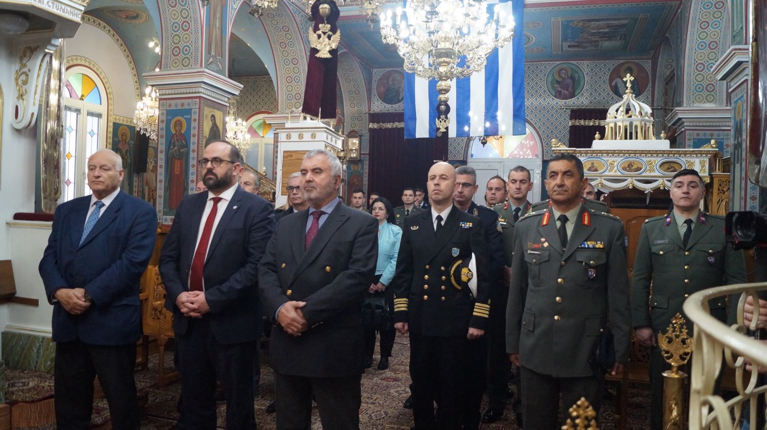 Το πρωί της Πέμπτης τελέστηκε δοξολογία, παρουσία πολιτικών και στρατιωτικών αρχών στον Ιερό Ναό Κοιμήσεων Θεοτόκου Καρυών και ομιλία από εκπαιδευτικό του Δημοτικού Σχολείου Καρυών.