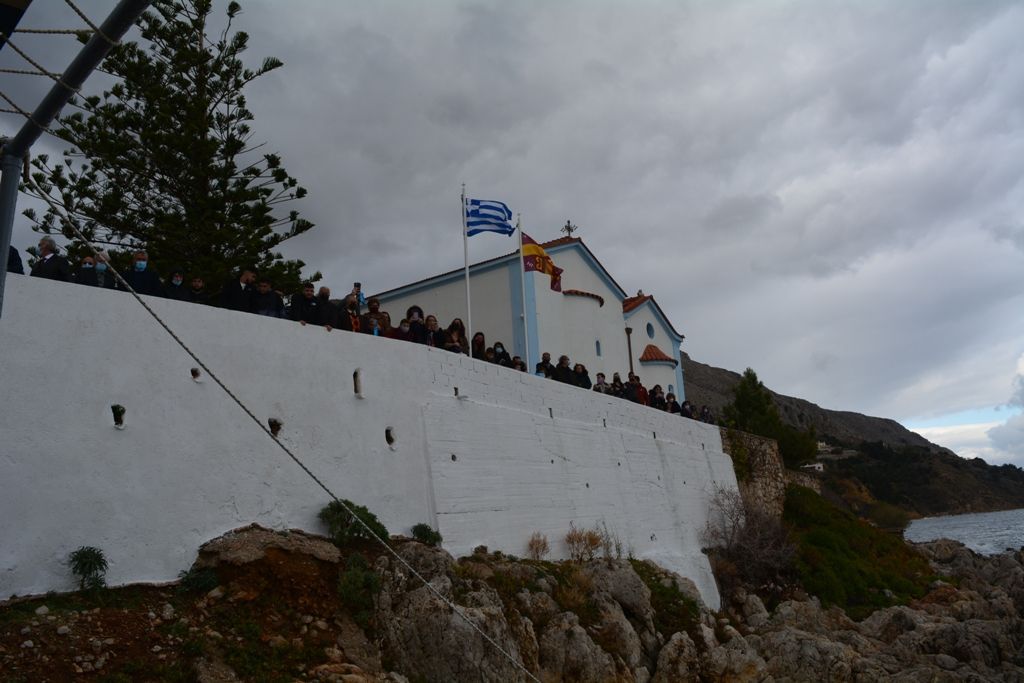Αμέσως μετά την δοξολογία ακολούθησε τρισάγιο των απολεσθέντων ναυτικών και κατάθεση στεφάνων στην προβλήτα του Ιερού Ναού.