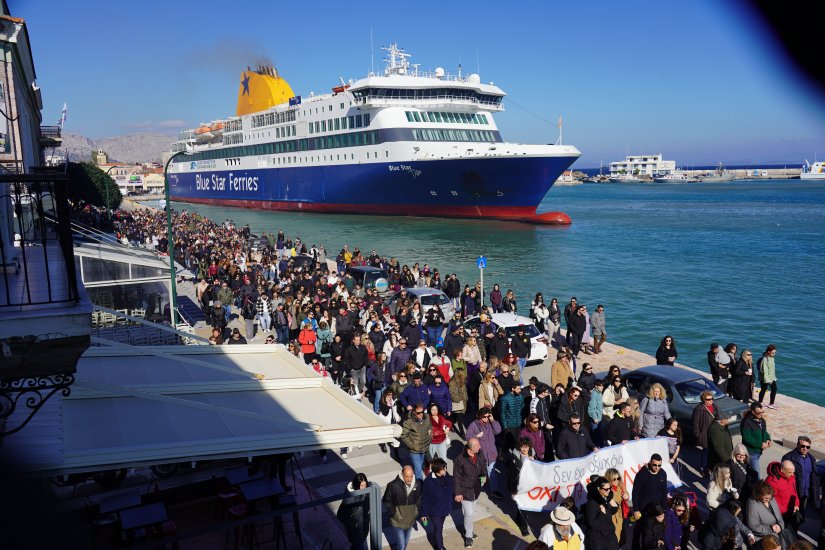 Στην συνέχεια ακολούθησε μαζική πορεία στο λιμάνι της Χίου, με στάση στην Μητρόπολη και κατάληξη στην κεντρική πλατεία.