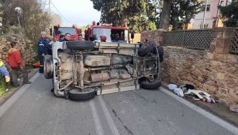 Εκεί Πυροσβέστες απεγκλώβισαν και διέσωσαν τον οδηγό τον οποίο στην συνέχεια παρέλαβε ασθενοφόρο του ΕΚΑΒ.