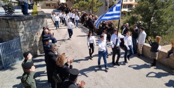 Ακολούθησε κατάθεση στεφάνων στο Ηρώον όπου μαθητές διάβασαν τους πεσόντες υπέρ πατρίδος της περιοχής της Αμανής.