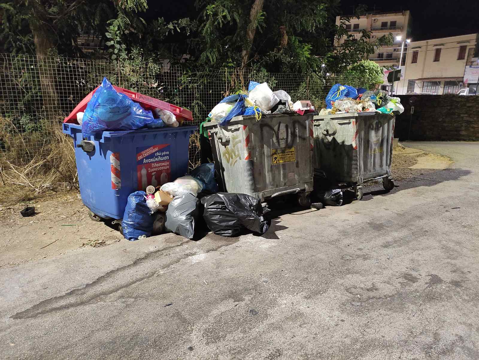 Οι δυό φωτογραφίες είναι ενδεικτικές. Μια έξω από το «τσιμεντοκυτίο» της Λάδης και η δεύτερη στην δυτική είσοδο τος Κάστρου.