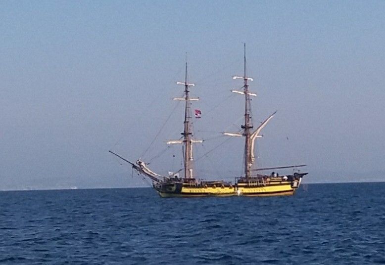 Πλοίο αντίγραφο πειρατικού έξω από το λιμάνι