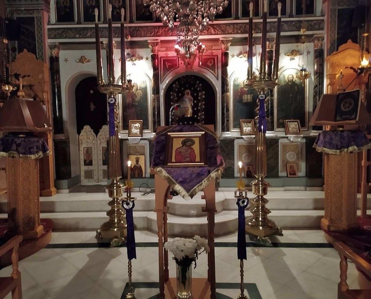 Κατευθυνθήτω ἡ προσευχή μου, ὡς θυμίαμα ἐνώπιόν σου, ἔπαρσις τῶν χειρῶν μου, θυσία ἑσπερινή.(Ιερός Ναός Αγίου Λουκά Λιβαδίων Χίου)