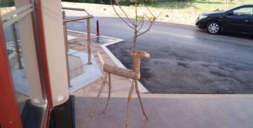 Ένας λιτός καλαίσθητος στολισμός με ένα ξύλινο ελαφάκι που συναντήσαμε έξω από την πολυκλινική Ελευθώ.