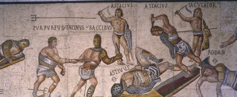 Τμήμα από το περίφημο «Ψηφιδωτό των Μονομάχων» που εκτίθεται στην γκαλερία Μποργκέζε της Ρώμης.
