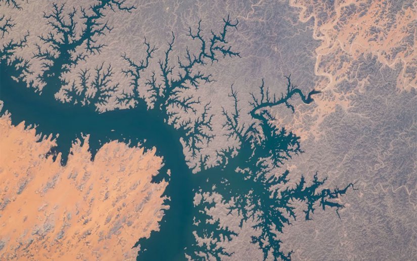 Το Τσενγκτού της Κίνας, στις 6 Ιουλίου 2022. NASAΜια σειρά από στροβιλισμούς σε σύννεφα που ταξιδεύουν πάνω από τις νήσους Κουρίλ στις 4 Ιουνίου 2022. Αυτά τα μοτίβα είναι γνωστά ως «δίνες von Kármán» και προκαλούνται από την τυρβώδη ροή του αέρα καθώς η ατμόσφαιρα συναντά μια εξέχουσα μορφή εδάφους, όπως ένα νησί. NASAΚανάλια που διακλαδίζονται και κοιλάδες γύρω από τη λίμνη Νάσερ, ενός τεράστιου ταμιευτήρα νερού στη νότια Αίγυπτο, φωτογραφημένη στις 7 Ιουνίου 2022. NASAΜια «λοξή» άποψη των Ιμαλαΐων, στο Νεπάλ, από διαστημική τροχιά, στις 10 Φεβρουαρίου 2023. NASAΝυχτερινή θέα της δυτικής Μεσογείου, με τα φώτα της Αλγερίας, του Μαρόκου και της Ισπανίας, στις 28 Ιουλίου 2022. NASA