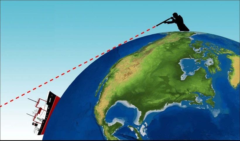 Και σε τι μέγεθος αντικειμένου θα αναφερόμασταν; Μεγάλο όσο ένα κρουαζιερόπλοιο, μικρό όσο μια βάρκα ή σημειακό όπως μία πηγή laser; Όχι, στο παρόν άρθρο δεν στοχεύουμε σε μία ακρίβεια που στερείται νοήματος, ιδίως όταν μιλάμε για ανθρώπινο μάτι, καιρικά φαινόμενα και αντικείμενα με διαστάσεις. Απλά θέλουμε να πάρουμε μία ιδέα για το πως επηρεάζει το που φτάνει η ματιά μας, το γεγονός ότι η Γη είναι μία σφαίρα. Γιατί, εδώ που τα λέμε, ούτε τέλεια σφαίρα είναι. Παρότι η απόκλιση είναι μικρή, η ακτίνα της Γης είναι μεγαλύτερη στον ισημερινό, απ’ ότι στους πόλους. Και ας μην ξεχνάμε πως υπάρχει και η διάθλαση από την ατμόσφαιρα, η οποία προεκτείνει τον ορατό μας ορίζοντα, ανάλογα με τις ατμοσφαιρικές συνθήκες που επικρατούν.