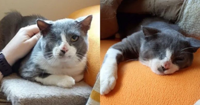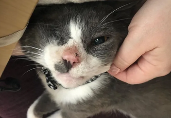 Ο Chris Poole, διασώστης ζώων, συνάντησε ένα ατημέλητο αδέσποτο που του έλειπε ένα μάτι, σε ένα τοπικό πάρκο. Η γκριζα γάτα επέστρεψε για φαγητό, αφού παρατήρησε ότι ο Chris έφερε φαγητό μια μέρα. Χρειαζόταν σαφώς ιατρική φροντίδα.