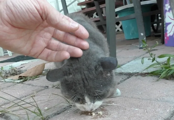 Τελικά, η γάτα βρήκε αρκετό θάρρος για να πλησιάσει τον Chris και να φάει από το χέρι του – ήταν το πράσινο φως που περίμενε ο Chris. Άπλωσε το χέρι του και άρχισε να χαϊδεύει τον μικρό στο κεφάλι.