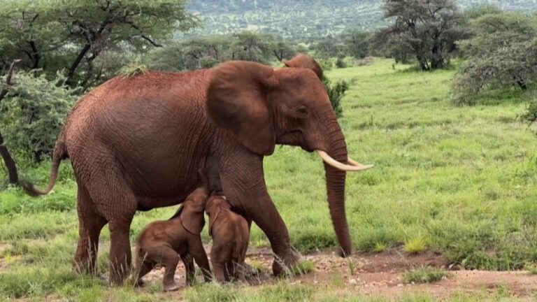 Ένα βίντεο που αναρτήθηκε στο X, πρώην Twitter, από την οργάνωση Save the Elephants, έδειχνε τους μικρούς ελέφαντες να τρέφονται από τη μητέρα τους, μαζί με άλλα μέλη του κοπαδιού.