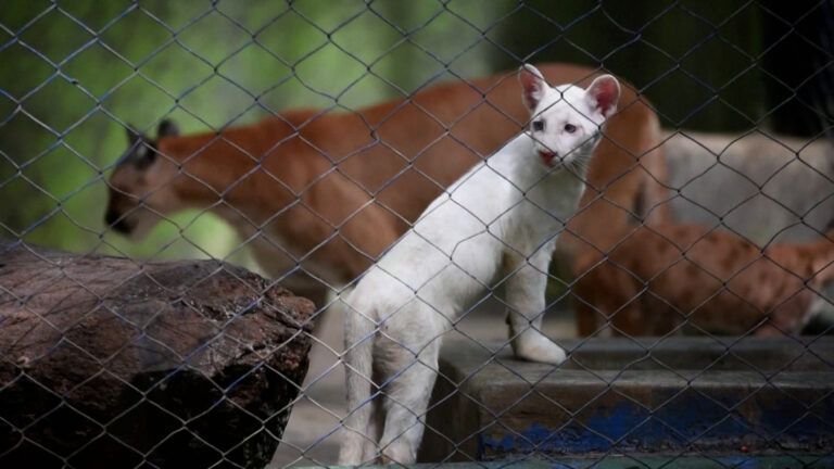 Το μικρό πούμα που γεννήθηκε σε αιχμαλωσία ονομάζεται Itzae, που στα Μάγια σημαίνει “δώρο από τον Θεό“, και είναι το μοναδικό αλμπίνο πούμα σε μια γέννα τριών ατόμων.