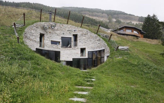 Στόχος αποτέλεσε η πλήρης ένταξη της κατοικίας στους πρόποδες βουνού, ώστε να προφυλαχθεί από τα ακραία καιρικά φαινόμενα της περιοχής των Άλπεων στην Ελβετία. Η είσοδος γίνεται από έναν απομακρυσμένο αχυρώνα, μέσω ενός υπόγειου τούνελ που καταλήγει στο εσωτερικό της κατοικίας. Η πρόσοψη του κτιρίου είναι ελαφρώς κεκλιμένη, προσφέροντας πλήρη θέα προς το ορεινό τοπίο της κοιλάδας.