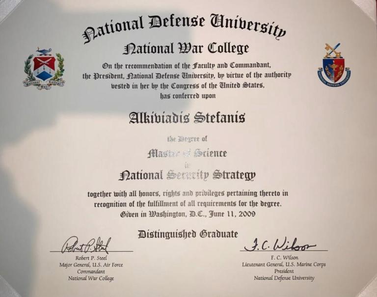 «Η λάσπη και οι αθλιότητες δεν με αγγίζουν, ούτε με πτοούν την ώρα που χειρίζομαι κρίσιμα για την πατρίδα μας θέματα. Και για τους εκ του πονηρού ερωτώντες, ιδού τα πτυχία μου». Ο κ. Στεφανής προσθέτει: «Σε ό,τι αφορά στο πρώτο, ήταν ομαδικό πρόγραμμα σπουδών του ΥΠΕΘΑ για τη Διαχείριση Κρίσεων. Σε ό,τι αφορά στο δεύτερο, ήμουν ο μοναδικός Έλληνας Αξιωματικός τη χρονιά 2008-2009 λόγω του ότι αρίστευσα στη Σχολή Εθνικής Άμυνας, αποφοιτώντας πρώτος και σύμφωνα με τις διαδικασίες, ως επιβράβευση και πληρώντας όλα τα υπόλοιπα στοιχεία επιλέχθηκα από το Συμβούλιο. Κατά τις εκεί σπουδές μου, εκτός της Ακαδημαϊκής μου αριστείας, ήμουν ο Πρόεδρος της επιτροπής Ηθικού του Πανεπιστημίου. Ολοκλήρωσα τις σπουδές μου ως Διακεκριμένος Απόφοιτος και βραβεύτηκα από το Γενικό Επιτελείο Στρατού».