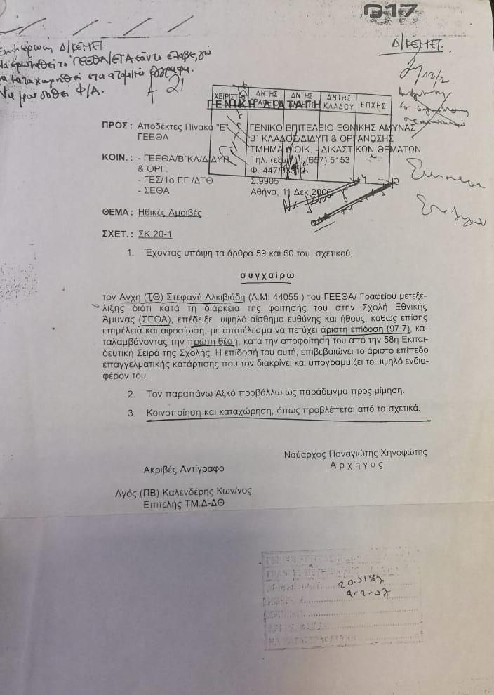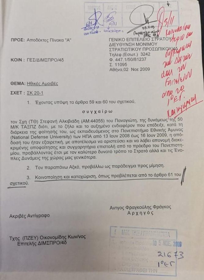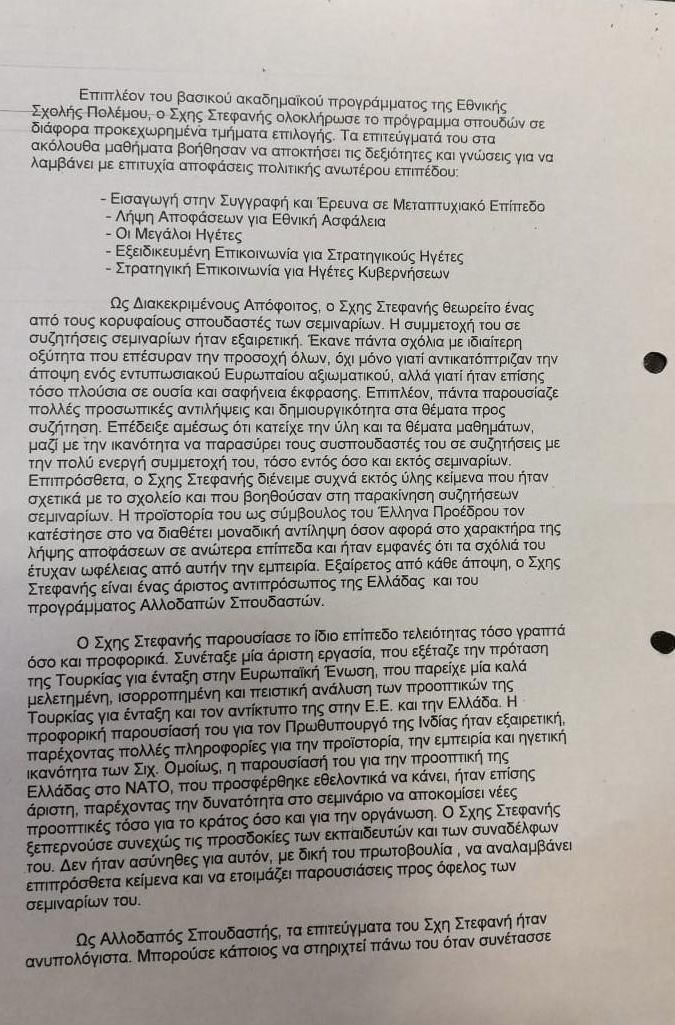Σε υστερόγραφο καταλήγει : «Τα παραπάνω αποτελούν διαδικασίες των Ενόπλων Δυνάμεων, ακολουθούμενες για την επιμόρφωση των στελεχών, στο πλαίσιο της επιζητούμενης αριστείας και όχι για τη λήψη επιδομάτων ή για ακαδημαϊκή καριέρα».