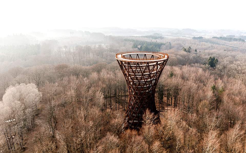 Έναν ελικοειδή πύργο που σε προσκαλεί να σκαρφαλώσεις πάνω από τις κορφές των δέντρων στο Gisselfeld Klosters Forest στη Δανία ολοκλήρωσε το δανέζικο στούντιο EFFEKT. Ο ύψους 45 μέτρων και σε σχήμα κλεψύδρας πύργος είναι μέρος του Camp Adventure, του μεγαλύτερου πάρκου ορειβασίας στην σκανδιναβική χώρα, μια ώρα με το αυτοκίνητο νότια της Κοπεγχάγης.