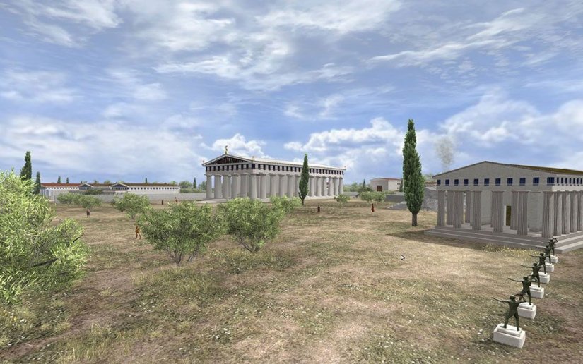 Οι χρήστες θα μπορούν να επισκεφθούν τον ναό του Δία, υπόδειγμα δωρικού περίπτερου ναού με θαυμαστό γλυπτό διάκοσμο, το Ηραίο, το παλαιότερο μνημειακό οικοδόμημα του ιερού, αφιερωμένο στη θεά Ήρα, το Γυμνάσιο, το οποίο χρησίμευε για την προπόνηση των δρομέων, των ακοντιστών και των δισκοβόλων, την Παλαίστρα, όπου προπονούνταν οι παλαιστές, οι άλτες και οι πυγμάχοι, το Βουλευτήριο, όπου αθλητές και κριτές έδιναν όρκο ότι θα τηρήσουν τους κανόνες των Αγώνων, το Στάδιο, όπου τελούνταν τα περισσότερα αγωνίσματα, καθώς και το εργαστήρι του Φειδία, στο οποίο μπορούν επίσης να παρακολουθήσουν τη δημιουργία του αγάλματος του Δία, το οποίο βλέπουν στη συνέχεια ολοκληρωμένο στον Ναό.