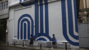 Τα «Κύματα» σε λευκό και μπλε χρώμα, μια τοιχογραφία της Ισραηλινής ζωγράφου...