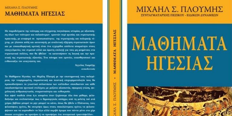Ο εκδοτικός οίκος Υπατία – Λυδία παρουσιάζει την Τετάρτη το βιβλίο με τίτλο ΜΑΘΗΜΑΤΑ ΗΓΕΣΙΑΣ, του Συνταγματάρχη Πεζικού – Ειδικών Δυνάμεων Μιχαήλ Σ. Πλουμή.