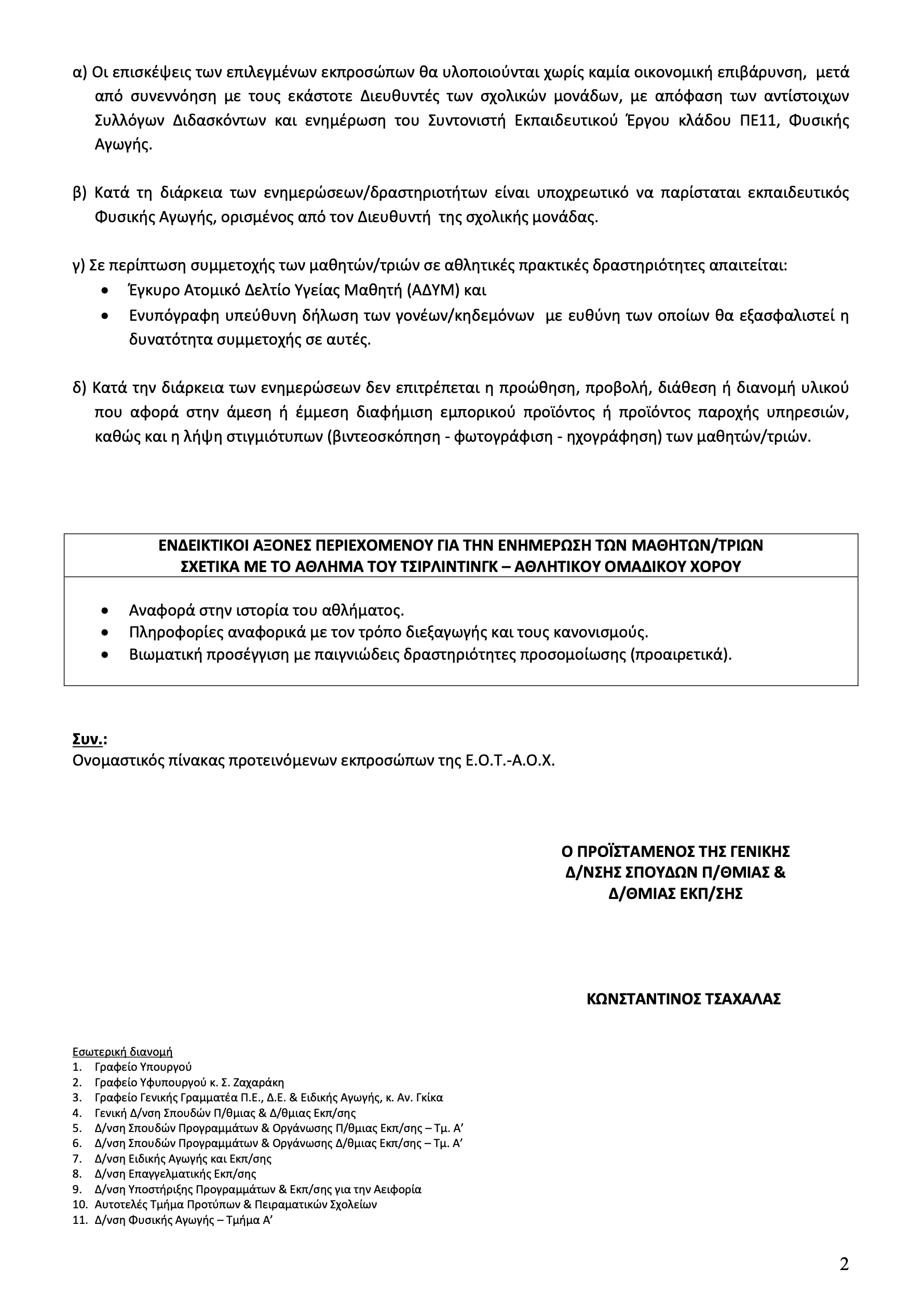 -Κατά τη διάρκεια των ενημερώσεων ή δραστηριοτήτων είναι υποχρεωτικό να παρίσταται εκπαιδευτικός Φυσικής Αγωγής, ορισμένος από τον Διευθυντή της σχολικής μονάδας.