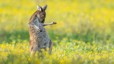 Ένας μικρός πίθηκος κρατά την ουρά του ποζάροντας με άψογο στυλ σαν να...