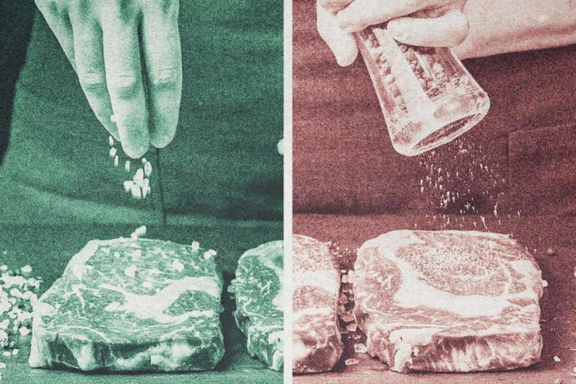 Δεν αλατοπιπερώνουμε το κρέας πριν από το ψήσιμο. Θέλει μόνο αλάτι γιατί το πιπέρι καίγεται στο τηγάνι.