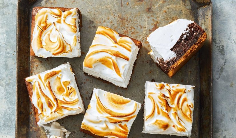 Το γαρνίρισμα με αφράτα μπράουνις με αφράτη ψημένη μαρέγκα κάνει ένα αγαπημένο καλοκαιρινό επιδόρπιο πιο εύκολο από ποτέ — δεν χρειάζεται φωτιά.