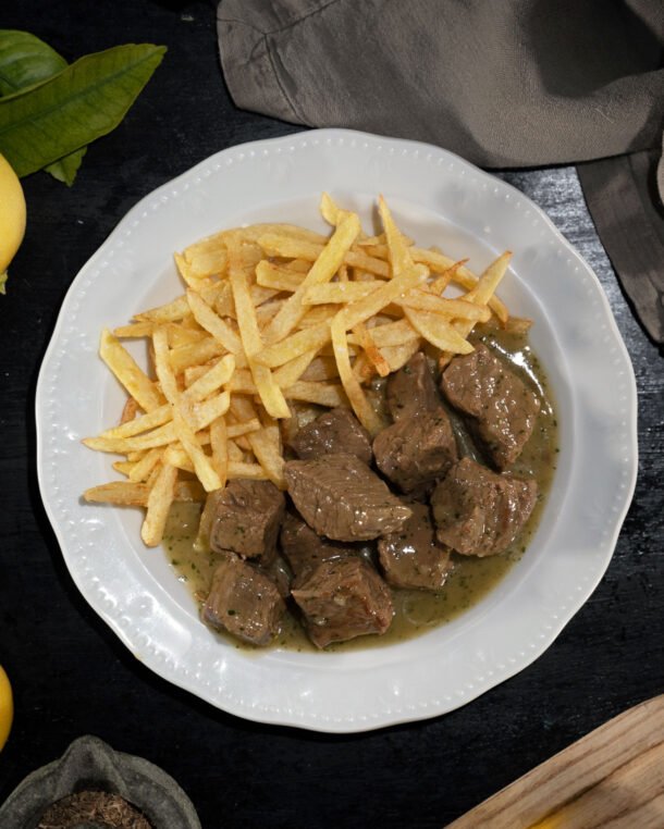- Συνοδεύουμε το μοσχάρι λεμονάτο με πατάτες τηγανητές.