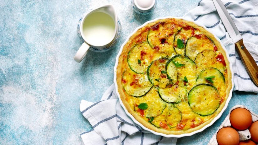 - Λαδώνουμε ένα πυρίμαχο σκεύος και βάζουμε μία στρώση κολοκυθάκια, μια στρώση ντομάτες, ρίγανη, αλάτι, πιπέρι και λίγη γραβιέρα.